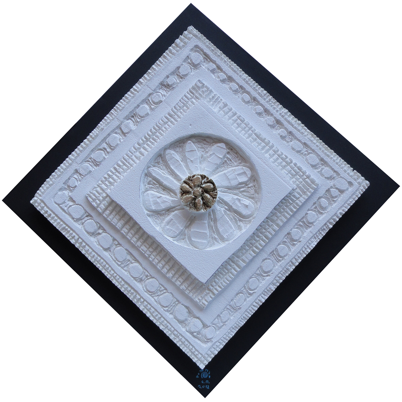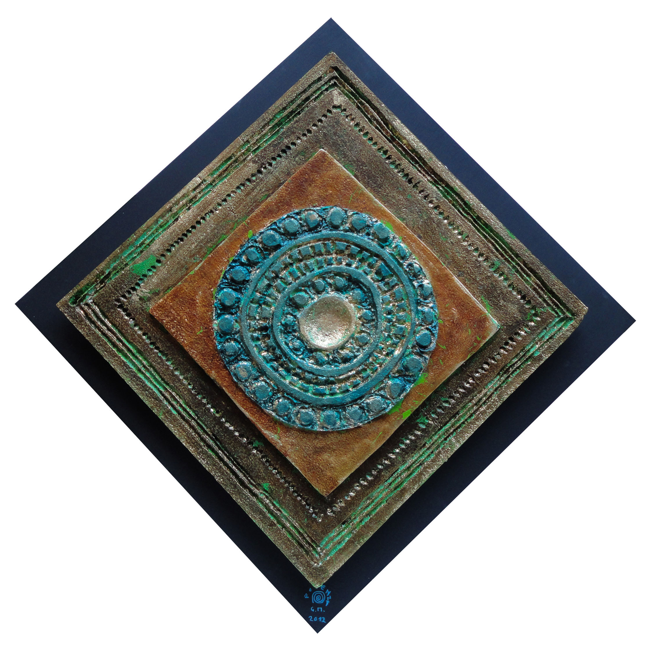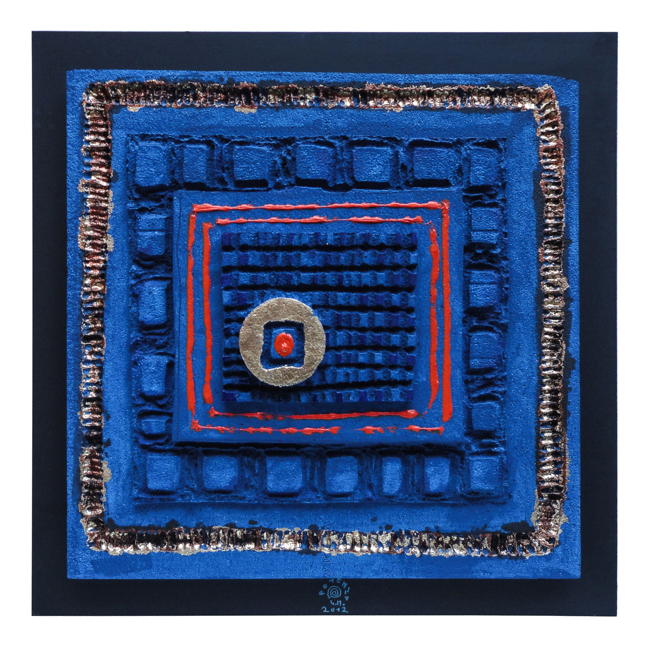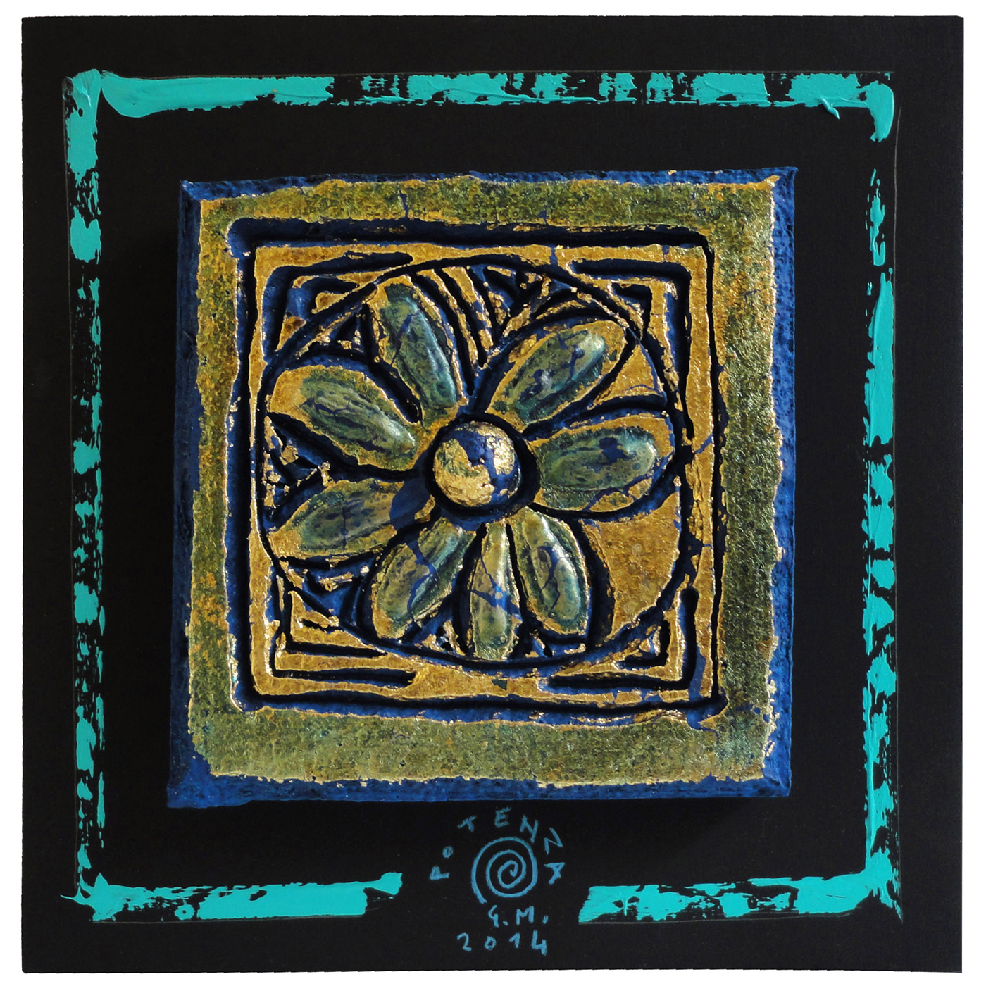 La policombustione è una particolare tecnica applicata da Gianmaria Potenza. Si tratta di lastre di polistirolo di diversa forma e spessore bruciate, assemblate e dipinte secondo un particolare disegno o riferimento. Il maestro trae dai tramonti lagunari e dai mosaici bizantini la principale fonte di ispirazione per queste opere. I colori impiegati, dal blu all’oro, interpretano luci e riflessi dei canali veneziani.